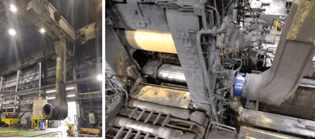 “To come up with our project, we tasked employees to identify hazardous tasks performed in the mill,” said HSM Electrical Planner [name]. “Our mill’s Accident Prevention Team then prioritized this list based on the number of incidents for each task presented. We chose the R3-R5 work roll change out because this task had the most incidents and injuries that year. These included a pinched finger while handling the Whompus stand, bent floor plates that have to be removed for bottom roll changes, damage to the valve stand, and more. We knew it was time do something.”